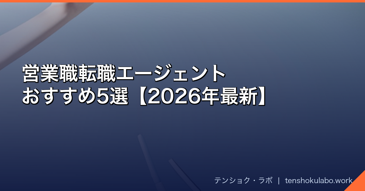 この記事では、営業職に特化した視点で転職エージェントの選び方と厳選5社を徹底比較する。さらに他の記事にはない独自切り口として、**「営業スタイル別(BtoB/BtoC/SaaS/ルート営業)のエージェント使い分け方」**も解説している。転職エージェント選びで迷っている営業職の方に、具体的な答えを届けることがこの記事の目的だ。